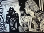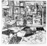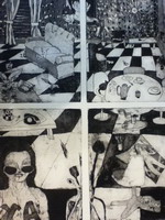 Munie d’une solide formation classique, Elisabeth Bronitz, artiste bruxelloise, débuta sa vie de plasticienne par l’exploitation rigoureuse du visage humain dans ce qu’il a de plus expressif et touchant, le visage vieilli par la vie, étudié sans relâche et projeté sur le papier en de larges et rapides touches colorées dont l’instinctivité nous permet d’entrevoir l’âme du modèle ou peut-être même celle de l’artiste. Son travail, tourné vers l’individu, s’attache aujourd’hui à l’intimité de celui-ci, le personnage est quasi absent ou donne une information complémentaire sur la composition. D’abord réalisée à l’eau-forte et ensuite à la peinture et au marqueur sur toile, ses « scénographies » enferment de multiples références à la culture (peinture, design,…) tout en évoquant une présence vivante (désordre) ; Tant dans ses gravures (eau-forte, lino) que dans ses peintures, Elisabeth Bronitz nous brosse le portrait d’un monde coloré et faussement naïf dans lequel la réalité de l’autre passe par le filtre de son imaginaire. Elisabeth Bronitz anime aujourd’hui des ateliers créatifs basés sur l’histoire de l’art et enseigne en Académie.